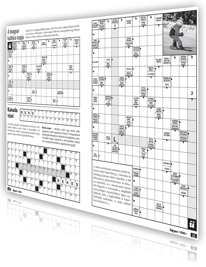 Az Ügyes 100 plusz elsősorban klasszikus és különleges skandináv és szókereső, szudoku feladványokat kínál kiváló minőségben. Több, mint 100 rejtvény egy kiadványban!